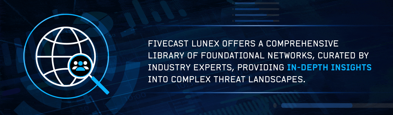 Fivecast LUNEX is a powerful, intelligence-led database that maps foundational online networks used by global threat groups. Curated by expert analysts, it delivers rapid insights into operationally relevant content and seamlessly integrates with the broader Fivecast OSINT suite.